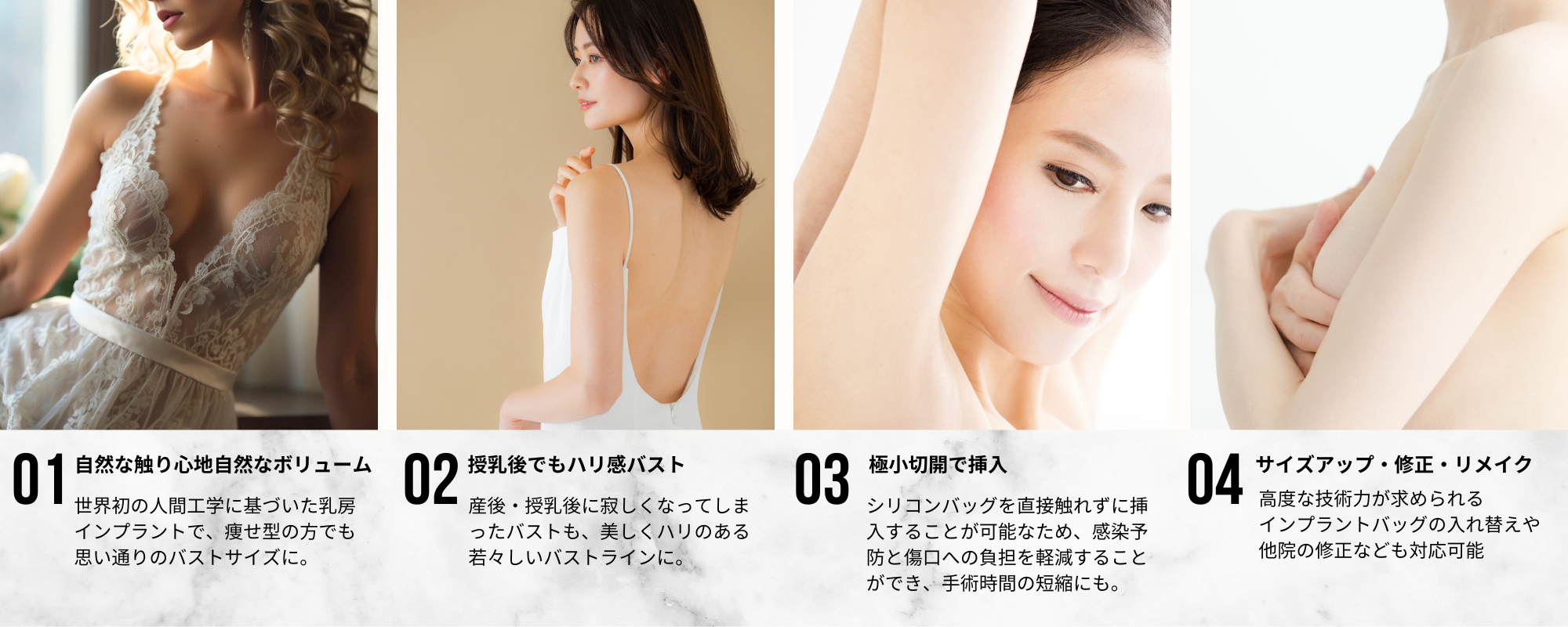 豊富なシリコンバッグとひとり一人に合わせたオーダーメイド施術