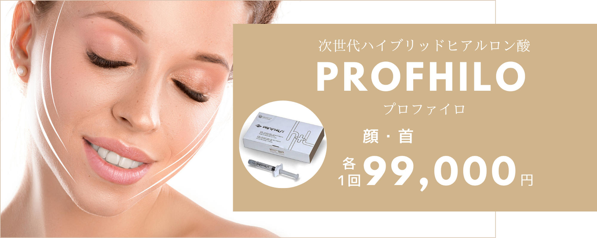 「注入物でしわ・凹みを埋める」という発想の今までの注入と異なり、プロファイロは年齢に伴い弾力性を失った「皮膚構造を再構築し修復する」という肌のエイジングケアをサポートするハイブリッドヒアルロン酸です。