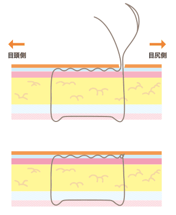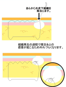 ■施術の説明:瞼板前の皮下組織の一部を除去しより細い糸と針で二重を作る施術法です。