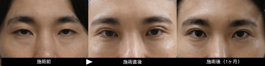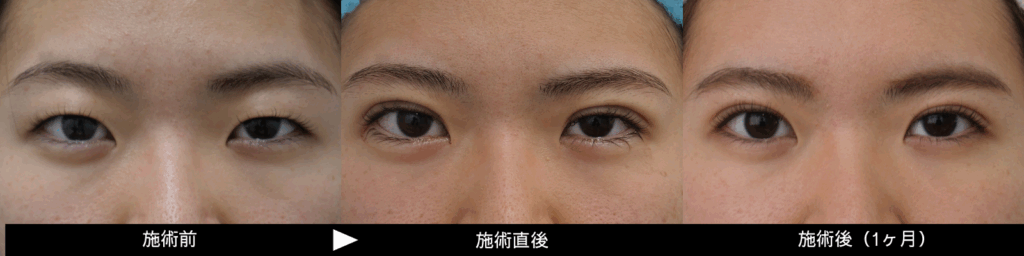 ■施術の説明:上まぶたを切らずに余分な脂肪を取り除くことで二重のラインをくっきりさせる施術です。