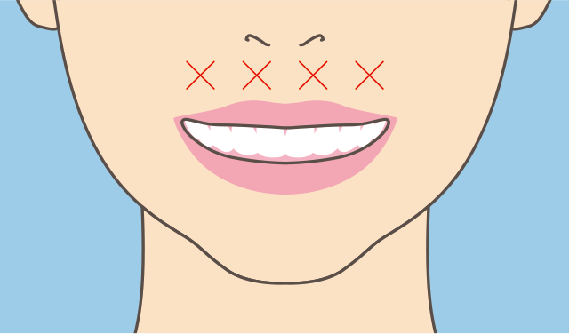 不自然にならないよう調整いたします。少し笑いづらくなりますが無表情になるようなことはございませんのでご安心ください。