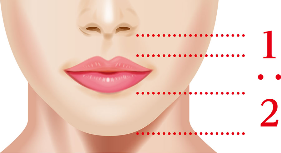 | どの程度切除するかによって印象は異なりますので術前のデザインが最も重要です。 人中短縮術の手術の傷跡は、鼻の下の輪郭に沿って形成されるため、傷跡が過度に目立つことはほとんどありません。鼻の下の長さと顎部分の長さのバランスを理想的な比率(1:2)に調整し、より理想的な長さに整えることが可能です。 | |