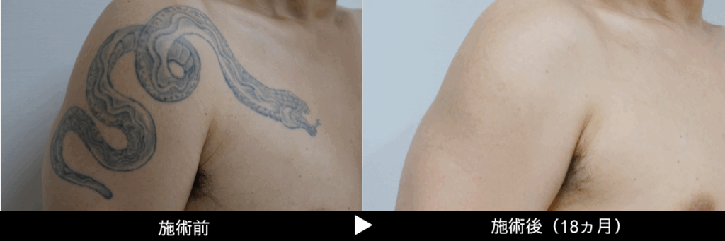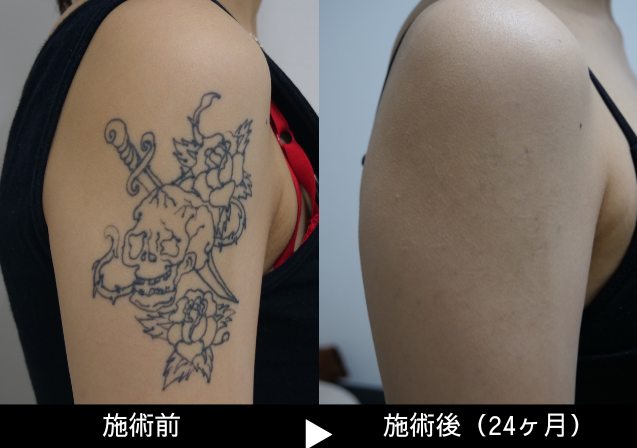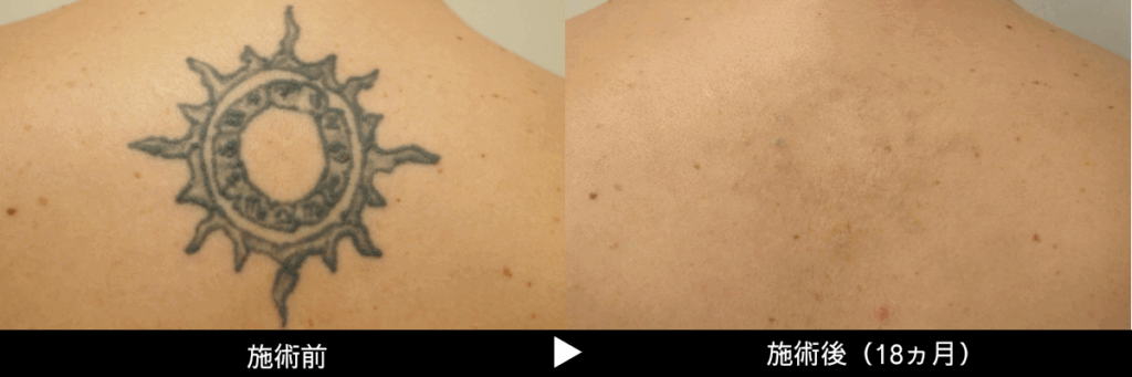 刺青の深さ、濃さ等で個人差はございますが、従来機のレーザーの約半分または三分の一の回数で除去が可能になったと言われています。