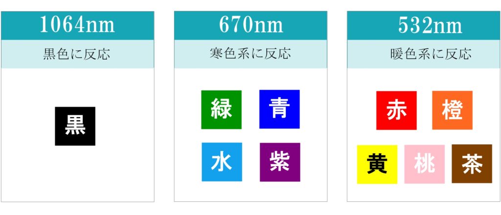エンライトンⅢはピコ秒に加えて、それぞれの色に反応しやすい3つの波長を選択できます。