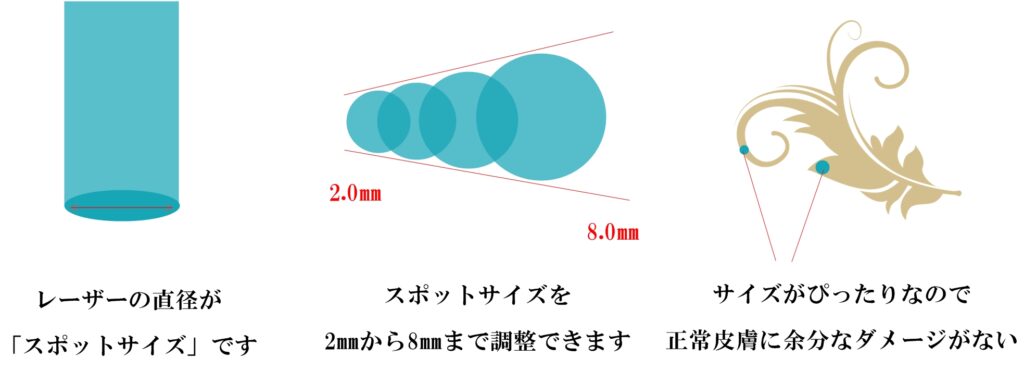 エンライトンⅢはスポットサイズ(レーザーの直径)を最少2.0mmから最大8.0mmまで調整ができます。